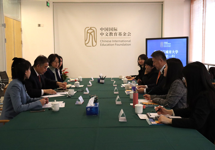 2022年2月23日,赵灵山秘书长会见澳门城市大学刘骏校长率领的代表团,双方探讨关于支持澳门城市大学开展孔子学院合作项目的可能性。